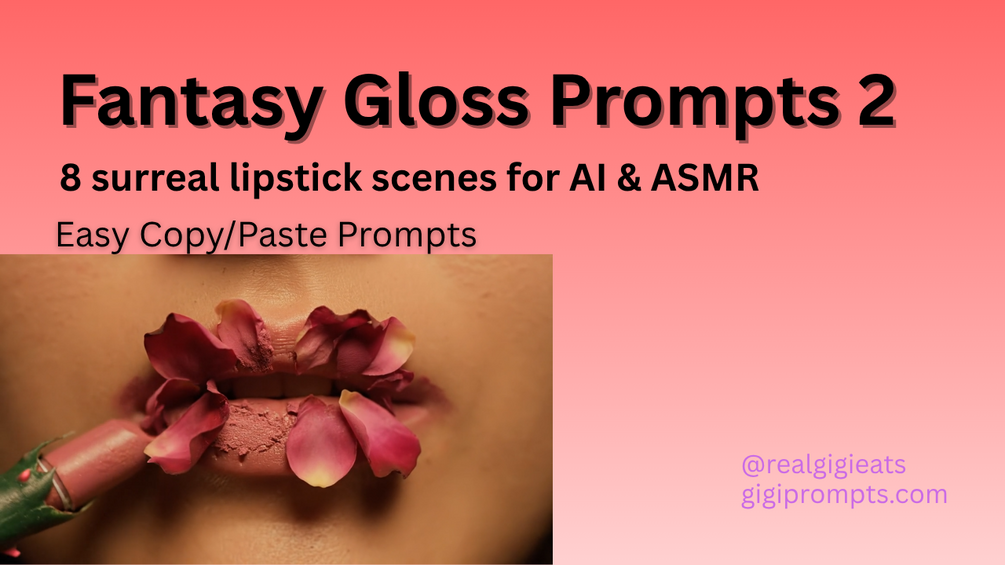 Fantasy Gloss Prompts 2 is your go-to prompt pack for ultra-HD, cinematic ASMR lipstick scenes that bloom, crackle, glow, and squish.